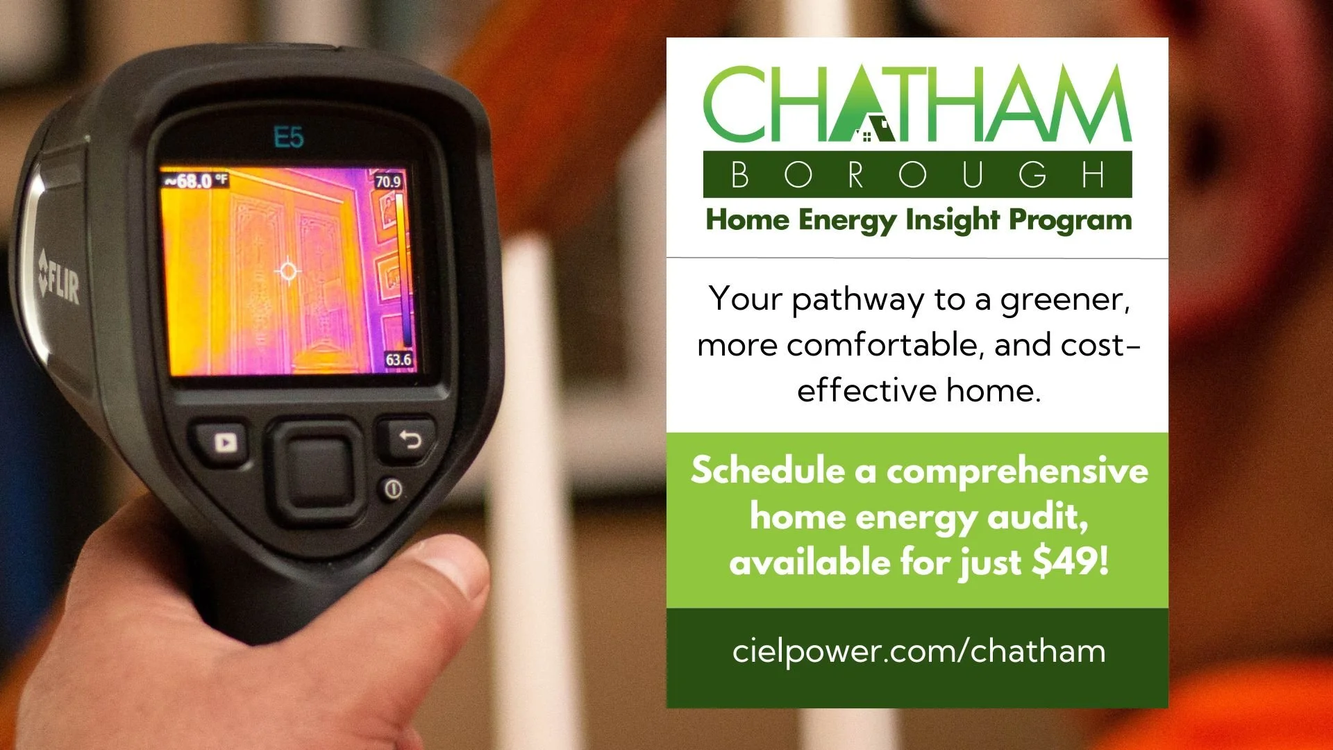 Chatham Borough homeowners are encouraged to seize this opportunity to improve their home's energy efficiency. To learn more about the Chatham Home Energy Insight Program and schedule a discounted home energy audit for only $49, visit cielpower.com/chatham or contact Ciel Power LLC at (201) 632-3463.