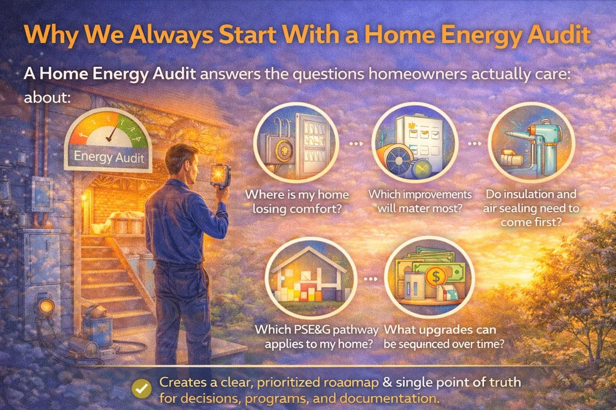 If you want to participate in the PSE&G Whole Home Energy Solutions program, the audit isn’t optional — it’s the starting point.